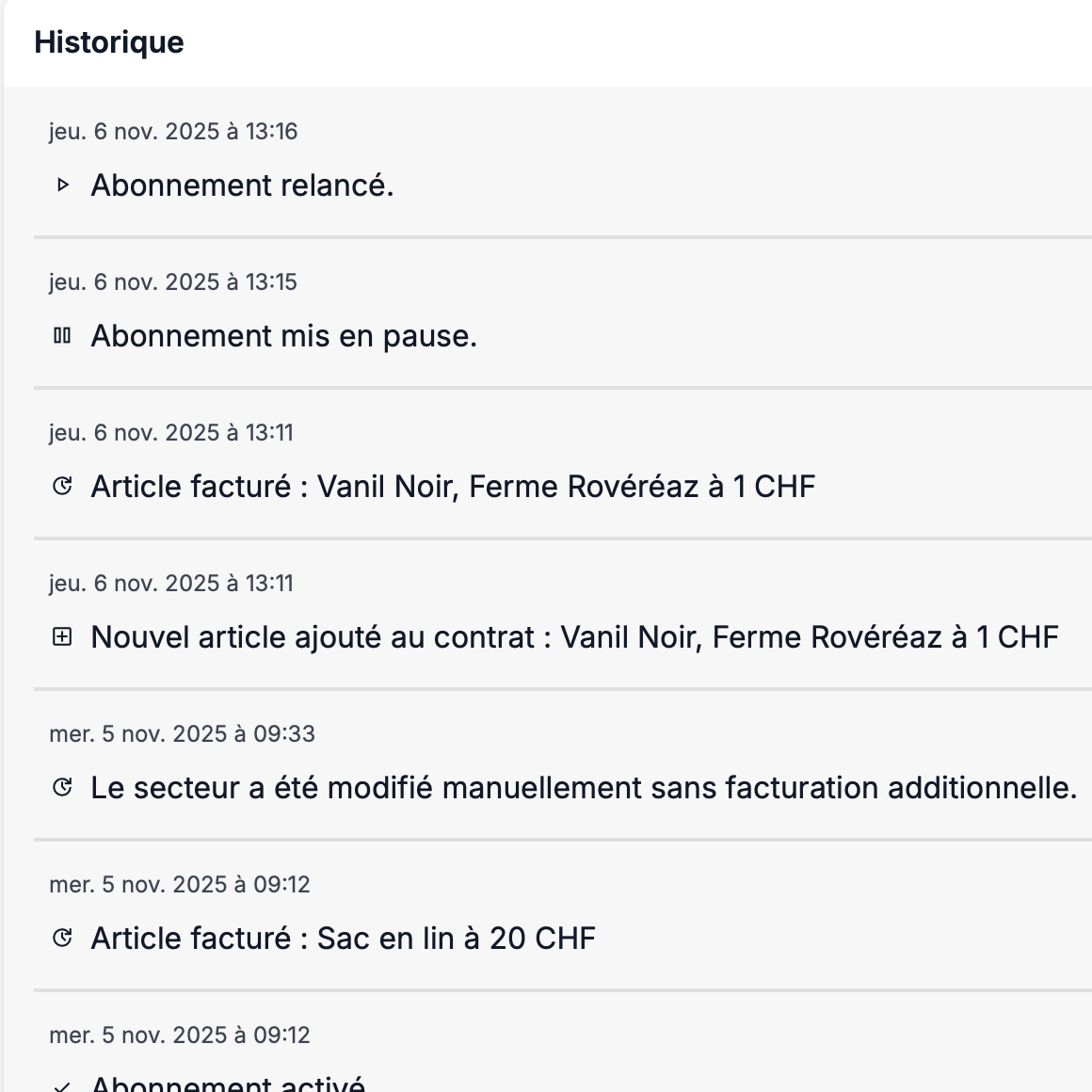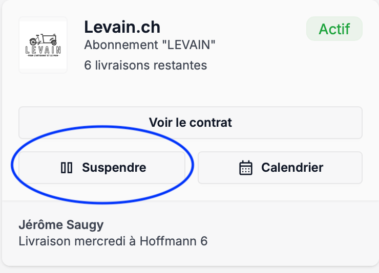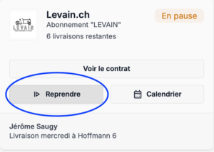 A) Les suspensions et reprises sont effectuées directement depuis le compte client (bouton à disposition sur le tableau de bord, voir ci-dessous)