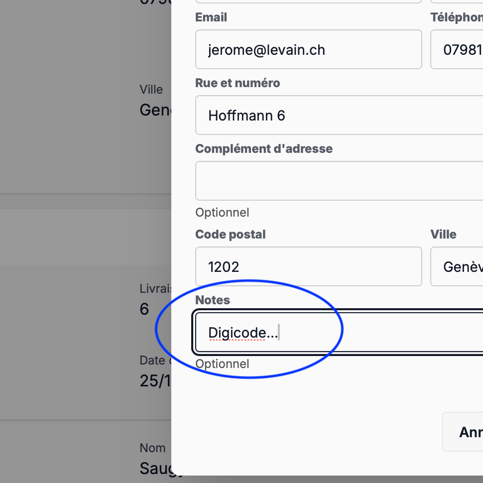 B) Il faut préciser les éventuels codes nécessaires pour accéder à la boite à lait dans la partie note de commande du formulaire d’inscription. La mise à jour des codes doit être faite via le compte en ligne (champ « notes »)